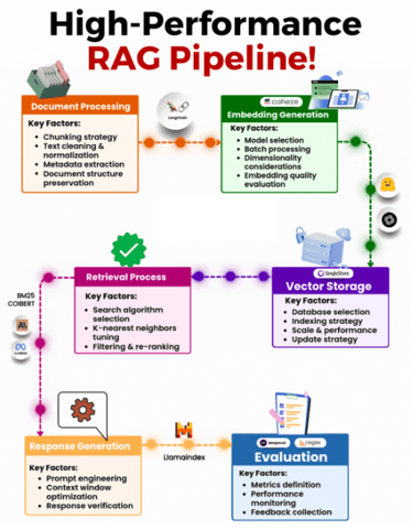 A RAG (Retrieval-Augmented Generation) pipeline seamlessly fuses the precision of information retrieval with the creativity of generative AI, transforming fragmented data into meaningful, human-like responses. By blending smart document processing, vector embeddings, and real-time evaluations, it delivers scalable, intelligent, and adaptive AI-driven solutions for dynamic user interactions.